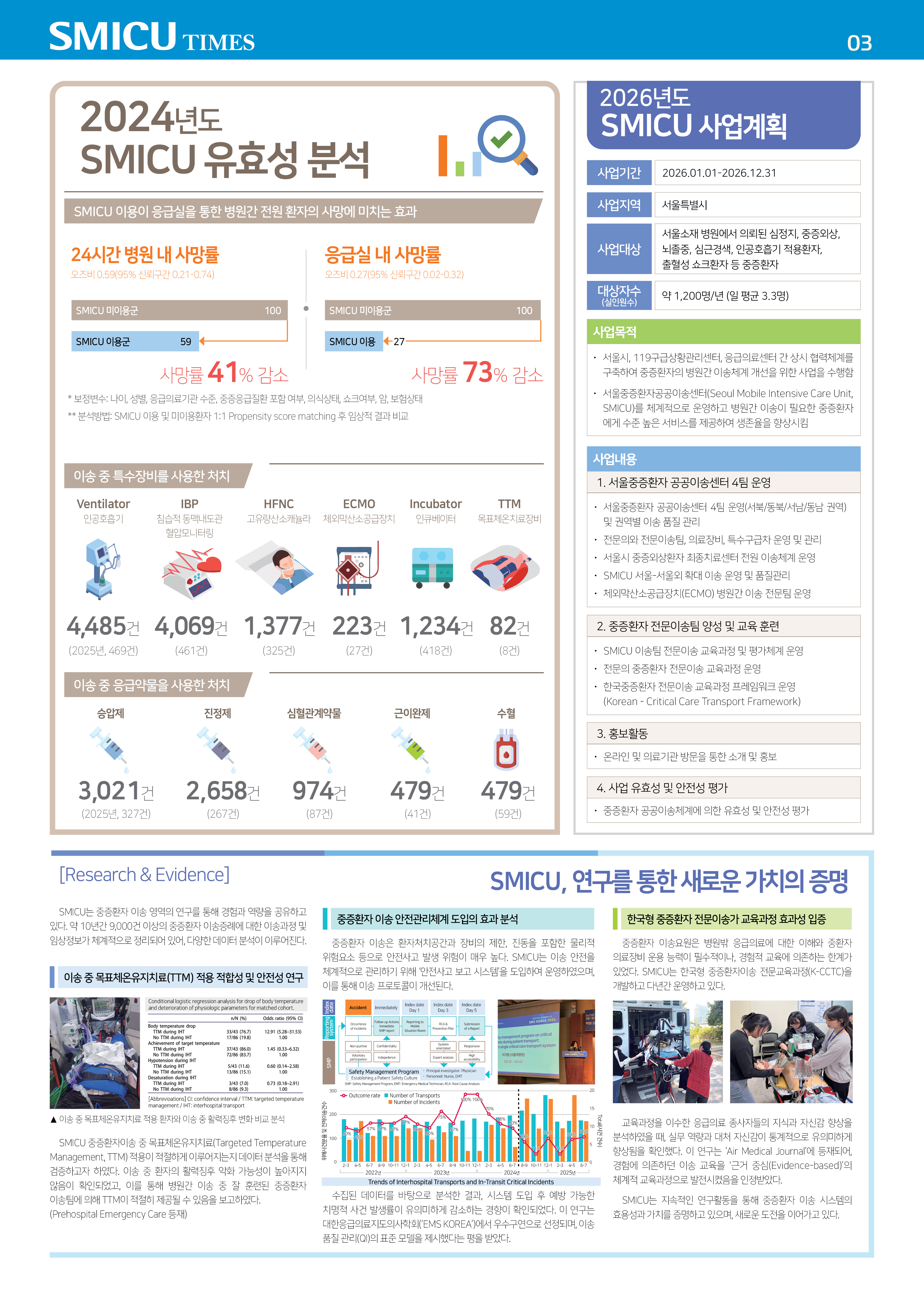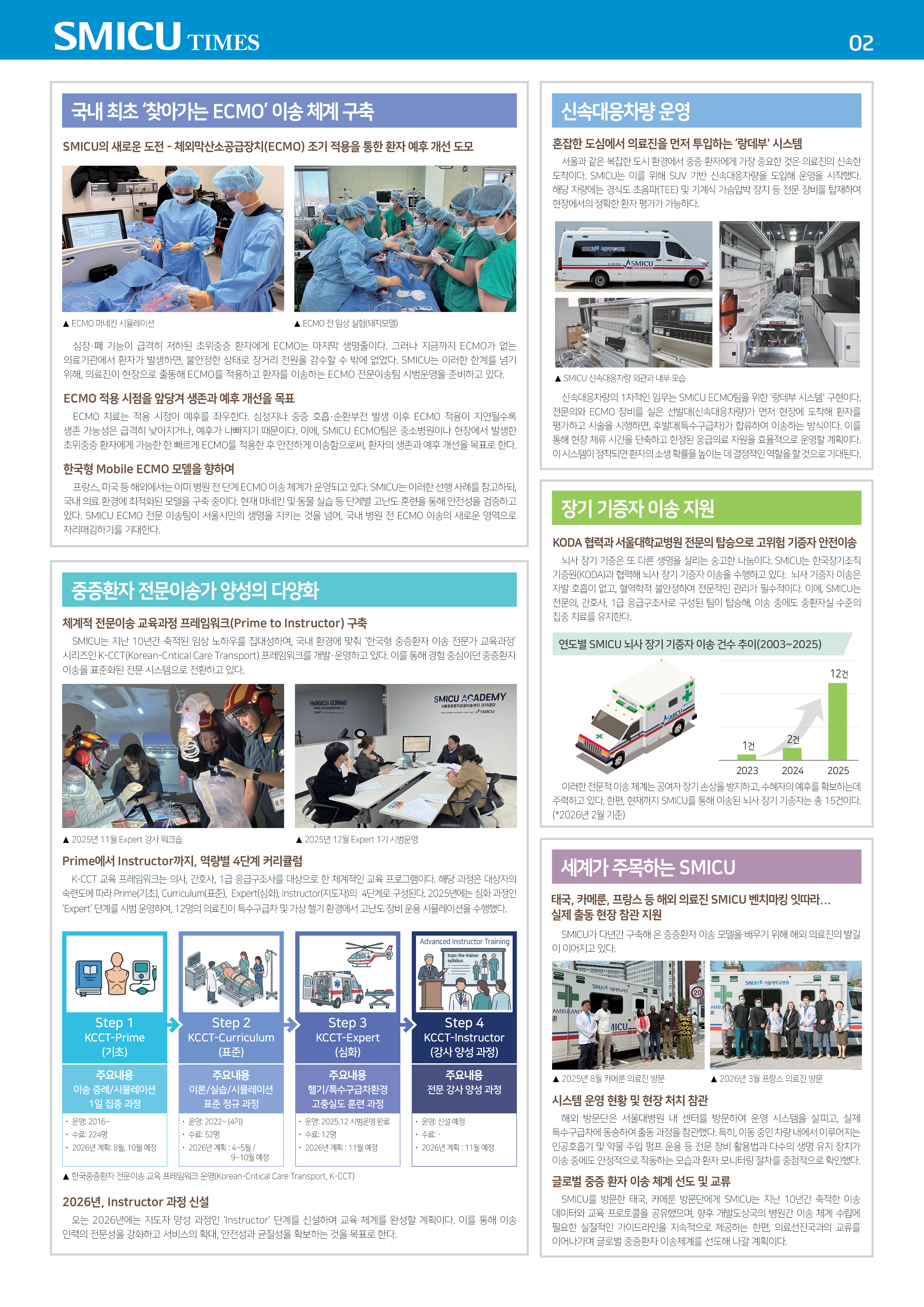 NOTIFICATIONS AND NEWS 알림 및 소식 알림 및 소식 뉴스레터 보도자료 채용공고 공지사항 갤러리 FAQ 뉴스레터 Home 알림 및 소식 뉴스레터 보도자료 채용공고 뉴스레터 FAQ 자료실 교육사진 보유장비 교육일정 갤러리 갤러리 공지사항 교육 문의하기 리뷰 SMICU 뉴스레터 6호 (2026.03) 등록일 2026.03.26 조회수 22 썸네일 SMICU-뉴스레터(A3)_6호_고해상도_2026_0324(1).jpg (대표) 첨부파일 서울중증환자 공공이송센터(SMICU) 뉴스레터 6호.pdf 목록