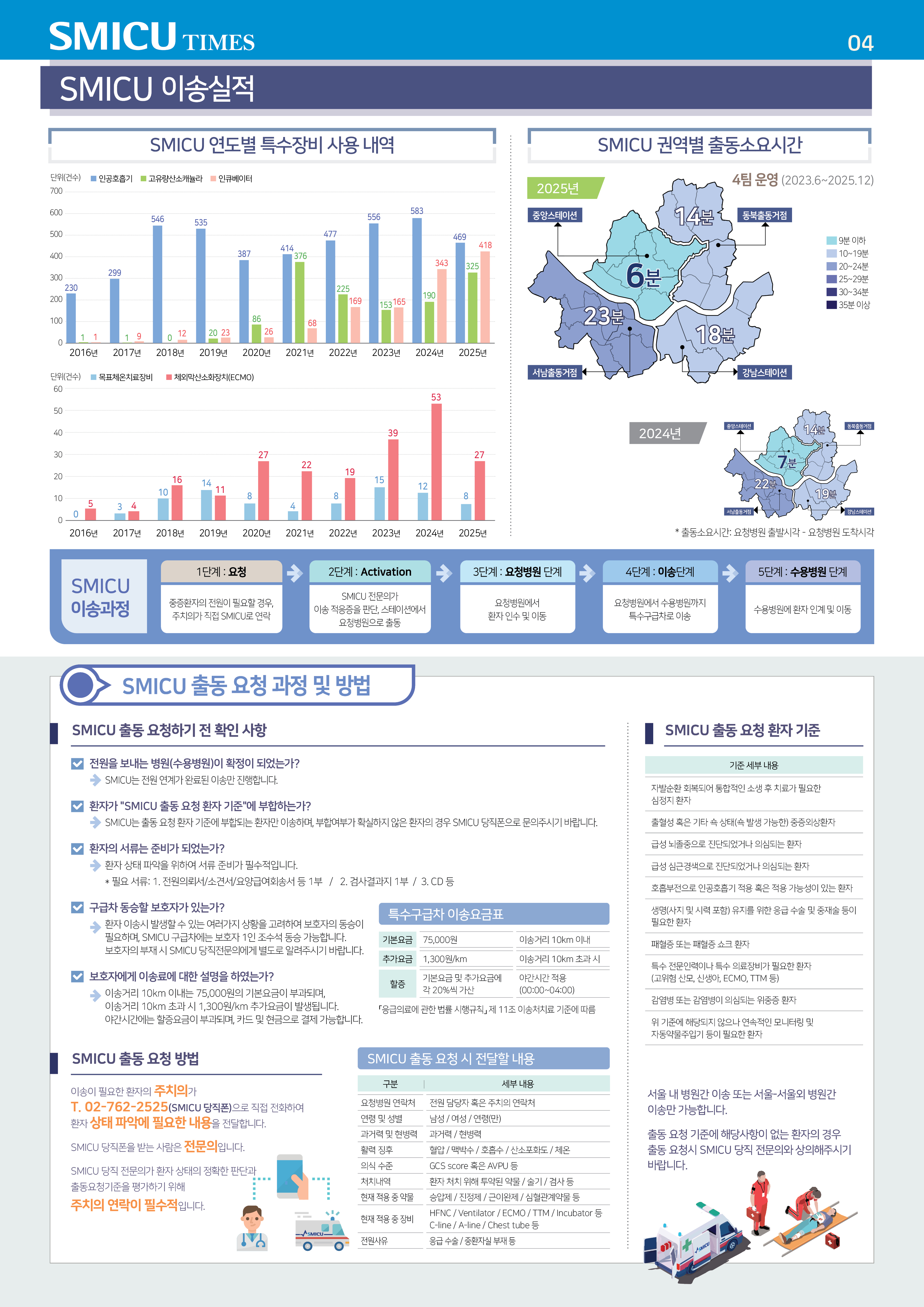 서울중증환자 공공이송센터 SMICU 사업 소개 SMICU 사업 특수구급차 보유장비 이송성과 교육정보 SMICU 중증환자 이송 교육(이송팀 교육) SMICU 중증환자 이송 교육(의사직 교육) 한국중증환자 전문이송교육(K-CCTC) SMICU 이용 출동요청방법 자료실 SMICU 중증환자 알림 및 소식 뉴스레터 보도자료 채용공고 공지사항 갤러리 FAQ 로그인 회원가입 교육홈페이지 바로가기 SMICU 이용방법 NOTIFICATIONS AND NEWS 알림 및 소식 알림 및 소식 뉴스레터 보도자료 채용공고 공지사항 갤러리 FAQ 뉴스레터 Home 알림 및 소식 뉴스레터 보도자료 채용공고 뉴스레터 FAQ 자료실 교육사진 보유장비 교육일정 갤러리 갤러리 공지사항 교육 문의하기 리뷰 SMICU 뉴스레터 6호 (2026.03) 등록일 2026.03.26 조회수 22 썸네일 SMICU-뉴스레터(A3)_6호_고해상도_2026_0324(1).jpg (대표) 첨부파일 서울중증환자 공공이송센터(SMICU) 뉴스레터 6호.pdf 목록